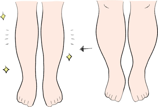そして、足裏のアーチが崩れ、偏平足やハイアーチになり地面に対して足裏が正常に着けなくなり、膝痛・股関節痛・腰痛にもなる可能性が高くなる・・・。