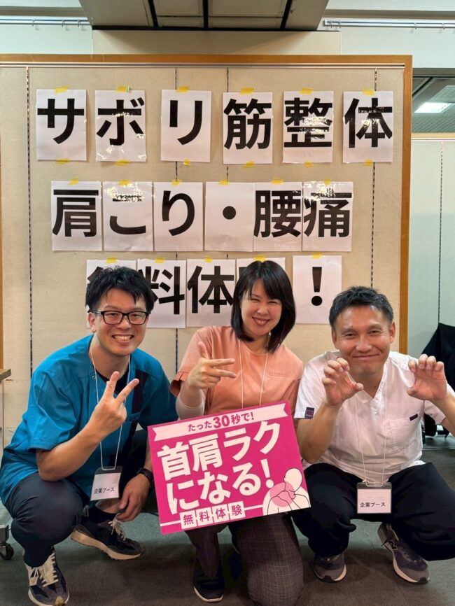 仲間と『サボり筋整体(セルフケア)』を出店し、参加された方々にサボり筋整体を体験していただきました✨